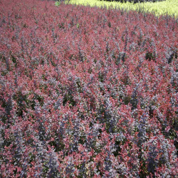 紫葉小檗是落葉灌木,幼枝紫紅色或暗紅色,老枝灰棕色或紫褐色。葉小全緣,菱形或倒卵,紫紅到鮮紅,葉背色稍淡。4月開(kāi)花,花黃色。果實(shí)橢圓形,果熟后艷紅美麗。